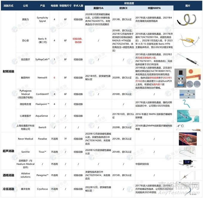 當(dāng)前,已有8家公司的RDN產(chǎn)品進(jìn)入NMPA創(chuàng)新器械特別審批綠色通道,5個(gè)產(chǎn)品獲得美國(guó)FDA突破性器械認(rèn)定,國(guó)外廠家以美敦力、ReCor Medical、Sonivies、Ablative Solutions為主,國(guó)內(nèi)以百心安、魅麗緯葉、信邁醫(yī)療、康灃生物、微創(chuàng)電生理、心諾普等為主。