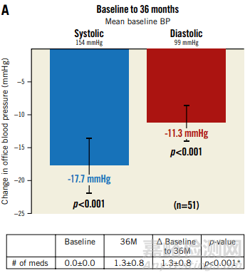 試驗(yàn)結(jié)果:RDN組患者在12個(gè)月內(nèi)服用較少藥物的情況下維持了良好的降壓效果(–16.5±12.9)mmHg