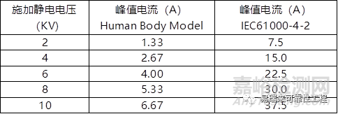 表5 HBM vs IEC61000-4-2標準的峰值電流@接觸放電方式