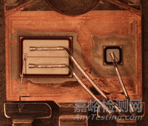 圖 1. TO−247 封裝,顯示了 IGBT 芯片(左)和二極管芯片(右)