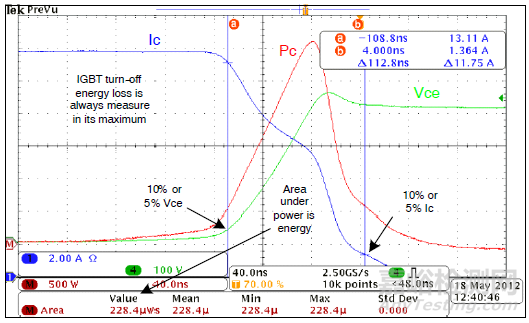 IGBT 損耗必須使用阻性負(fù)載或在負(fù)載消耗功率的部分周期內(nèi)進(jìn)行測(cè)量。這樣可消除二極管導(dǎo)通。