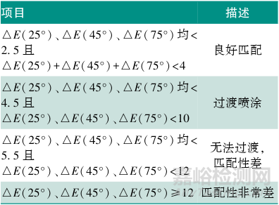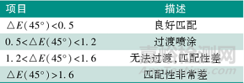 表2 針對金屬漆的△E范圍定義