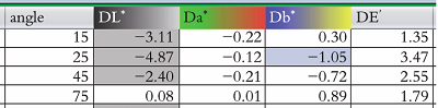 常見的評價顏色的參數(shù)有L、a、b、C、H以及△E,△E被定義為樣品的總色差,等于L、a、b3個變量的平方和再開方,但不能表示出樣品的色差的偏移方向,△E數(shù)值越大,說明色差越大。