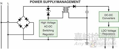 由于LDO的壓差(輸入與輸出電壓的差值)僅幾百mV,則在開(kāi)關(guān)電源的輸出略高于LDO幾百mV就可以輸出標(biāo)準(zhǔn)電壓了,并且其損耗也不大。