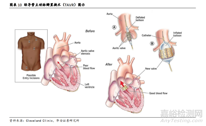 TAVR相比傳統(tǒng)開胸手術(shù)優(yōu)勢明顯,有望成為主流趨勢。經(jīng)導(dǎo)管主動脈瓣膜置換術(shù)(TAVR/TAVI)是針對主動脈瓣膜疾病(尤其是主瓣狹窄,下稱AS)患者外科手術(shù)不耐受情況下的主要治療方法;TAVR作為一種介入治療技術(shù),其最大特點是無需開胸、主要通過經(jīng)股入路完成主動脈瓣膜置換術(shù)。