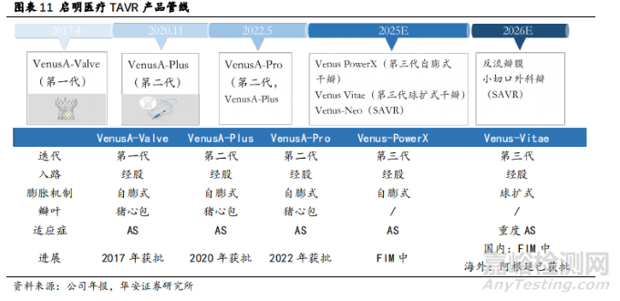 TAVR的手術(shù)路徑主要包括經(jīng)股動脈和經(jīng)心尖兩種。其中經(jīng)股動脈術(shù)式因創(chuàng)傷小、技術(shù)成熟等特點被作為首選。 啟明醫(yī)療的產(chǎn)品為經(jīng)股動脈術(shù)式手術(shù),創(chuàng)傷小且技術(shù)成熟。 目前,啟明醫(yī)療在主動脈瓣介入領(lǐng)域總計布局6款TAVR產(chǎn)品,包括了已經(jīng)上市的第一代TAVI產(chǎn)品VenusA-Valve、二代產(chǎn)品VenusA-Plus和二代產(chǎn)品改進(jìn)版VenusA-Pro,以及即將上市的兩款全新TAVR產(chǎn)品。新一代TAVR產(chǎn)品Venus-PowerX(自膨式干瓣)、Venus-Vitae(球擴式干瓣)預(yù)計2025年前后獲批,其中Venus-Vitae已于2022年底在阿根廷上市。