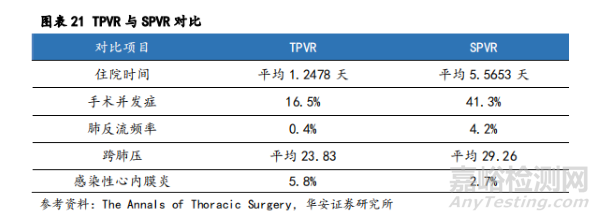 (1)在小眾市場相較于開胸手術(shù),TPVR具有無可替代的安全性。 TPVR針對的受眾主要是先天性心臟病,過去這類患者主要通過外科肺動脈瓣置換手術(shù)治療。相比于后者的開胸手術(shù),TPVR憑借手術(shù)的微創(chuàng)性、后遺癥等方面具有較大優(yōu)勢。