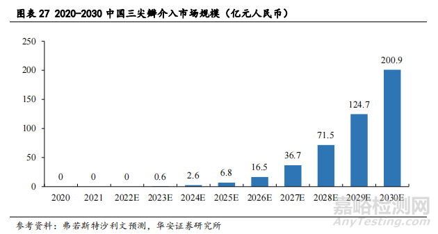 我國2030年TTV介入手術(shù)市場規(guī)模達(dá)200億元,2030年手術(shù)量每年20萬例。根據(jù)弗若斯特沙利文數(shù)據(jù),預(yù)計2030年經(jīng)導(dǎo)管三尖瓣介入手術(shù)將增長至20萬例,2023年至2025年的復(fù)合年增長率為232.2%,2025年至2030年的復(fù)合年增長率為97.1%。