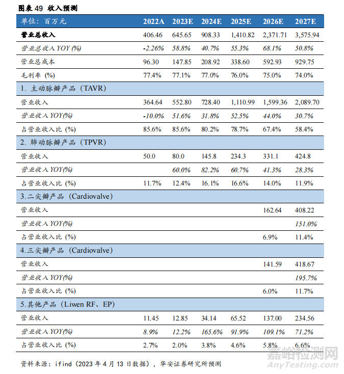 我們預(yù)計公司TPVR業(yè)務(wù)在2023—2025年呈現(xiàn)快速增長趨勢,基于以下原因:1)公司TPVR產(chǎn)品(VenusP-Valve)為國內(nèi)獨家產(chǎn)品,填補了治療空白。2)公司TPVR產(chǎn)品于2022年在歐洲獲批CE MDR注冊許可,有望在2023年海外市場實現(xiàn)快速放量。我們看好公司2023—2025年TPVR收入分別實現(xiàn)8000萬元、1.46億元、2.34億元,2023—2025年營業(yè)收入同比增長60.0%、82.2%、60.7%。