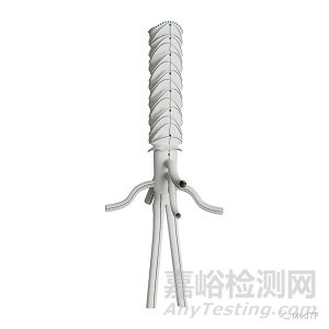 Thoracoflo是一種采用泰爾茂獨特的Gelwave編織聚酯制備的胸腹混合人工血管。Thoracoflo近端是覆膜支架,而遠端連接著由Gelwave編織聚酯制備七臂小血管。