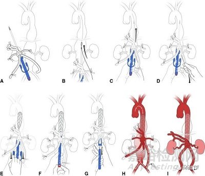 未來解決手術(shù)帶來的并發(fā)癥,醫(yī)生們采取很多治療策略,例如器官保護、腦脊液引流、左心搭橋術(shù)、順序夾閉主動脈和選擇性節(jié)段動脈再植入等等。盡管采用這些策略后相關(guān)的并發(fā)癥有所減少,發(fā)病率和死亡率都有所改善。但是涉及廣泛胸腹切口、單肺通氣和體外循環(huán) (ECC) 的開放式手術(shù)技術(shù)帶來了巨大的手術(shù)負擔。即使在非常優(yōu)秀的專業(yè)中心,也有 1.5 – 10.7%患者會出現(xiàn)透析依賴性腎衰竭。