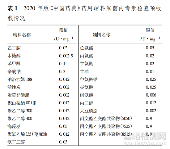 1. 3 《中國藥典》藥用輔料細(xì)菌內(nèi)毒素標(biāo)準(zhǔn)設(shè)定