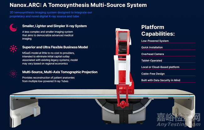 此外,Nanox.ARC具備更小、更輕、更簡單的X射線系統(tǒng),是一種那么復(fù)雜、更小的成像系統(tǒng);創(chuàng)新的多源、多軸層析成像投影,是通過多個低功率X射線管重建患者解剖結(jié)構(gòu)。