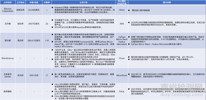 ▲海外青光眼MIGS手術(shù)器械相關(guān)企業(yè)一覽(數(shù)據(jù)來(lái)源:Wind,公司官網(wǎng),融匯器械團(tuán)隊(duì)整理)
