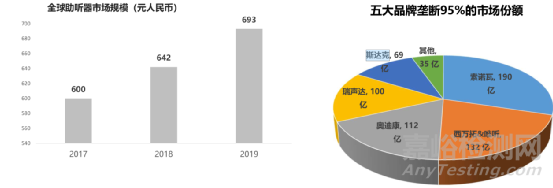 全球看,目前助聽(tīng)器市場(chǎng)規(guī)模已經(jīng)超過(guò)100億美元,且市場(chǎng)主要被索諾瓦、西萬(wàn)拓&唯聽(tīng)、奧迪康、瑞聲達(dá)、斯達(dá)克五大品牌壟斷,占據(jù)了95%的市場(chǎng)份額。