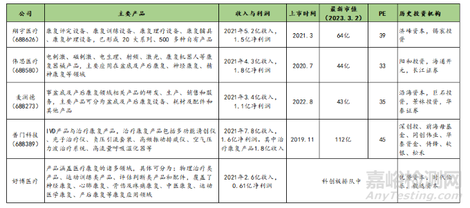 國(guó)內(nèi)康復(fù)器械領(lǐng)域上市公司情況如下: