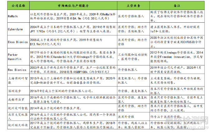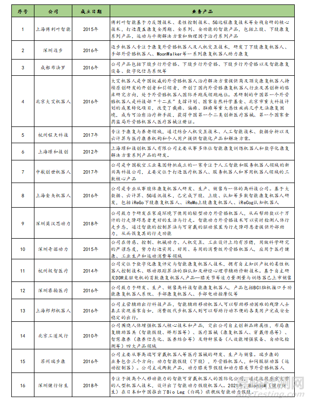 國(guó)內(nèi)主要外康復(fù)機(jī)器人廠家總結(jié)如下: