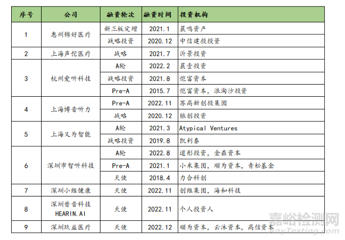 助聽(tīng)器行業(yè)融資情況總結(jié)如下:
