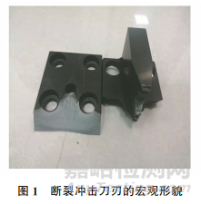 沖擊性能是指材料抵抗沖擊載荷的能力,在材料力學性能的研究中具有重要意義。沖擊試驗機是用來測試材料沖擊韌性的設備,由機座、機架、擺錘、沖擊刀刃、操作機構和讀數裝置等6個部分組成,根據需要還可增加一些輔助設備,如高低溫裝置、試樣自動對中裝置等。目前,許多機械結構的設計都向著輕量化方向發(fā)展,這就要求材料具有較高的強度和硬度,以及良好的塑形和韌性,該類型的材料進行沖擊試驗時,會對沖擊試驗機造成一定的損壞,尤其會使沖擊刀刃的使用壽命大大縮短,甚至出現沖擊刀刃斷裂的現象,典型斷裂沖擊刀刃的宏觀形貌如圖1所示。來自河鋼集團鋼研總院的邢承亮、宋月等研究人員對沖擊試樣、沖擊刀刃、沖擊試驗機的選擇以及試驗過程等方面進行了研究,查明了沖擊刀刃斷裂的原因,提出了合適的控制方法,以避免該類問題再次發(fā)生。