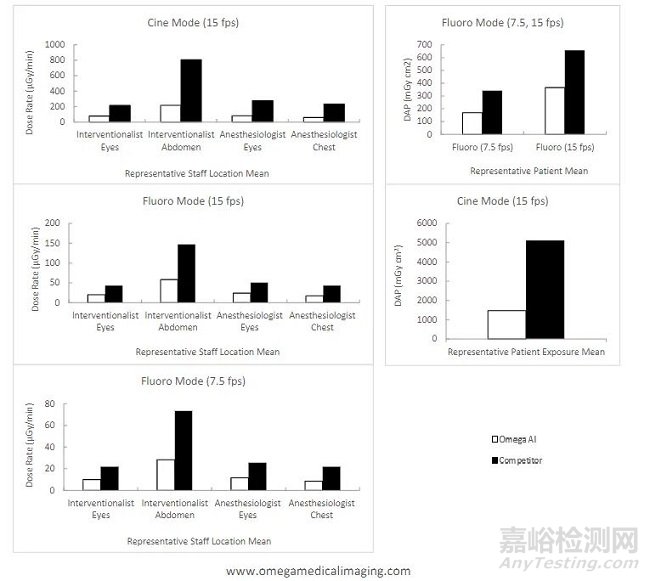 對(duì)此,有相關(guān)人員做了實(shí)驗(yàn)研究,研究結(jié)果表明,在不同率的所有采集模式下,當(dāng)將Omega Al圖像引導(dǎo)x射線系統(tǒng)與西門(mén)子非AI系統(tǒng)進(jìn)行比較時(shí),輻射顯著減少,在電影模式下工作人員和患者的輻射減少分別高達(dá)~75%和~71%;