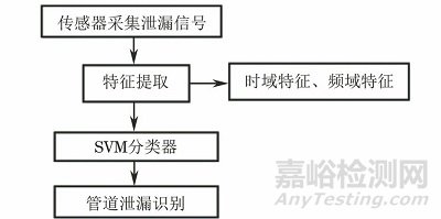 支持向量機(jī)(SVM)是一種基于統(tǒng)計(jì)理論的機(jī)器學(xué)習(xí)算法,泛化能力強(qiáng),可以解決小樣本、非線性核高緯模式識(shí)別問題,其泄漏識(shí)別原理如圖2所示。