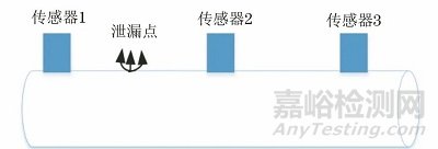 張曦等考慮到環(huán)境噪聲的影響,提出三傳感器定位模型對(duì)管道泄漏進(jìn)行定位,傳感器的布置方式如圖6所示。其試驗(yàn)結(jié)果表明,該定位模型可以弱化噪聲影響,適用于泄漏率較低和定位精度要求高的情況。