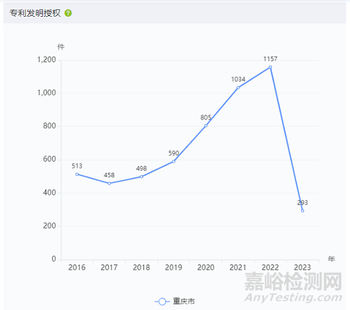 從專利發(fā)明授權(quán)看,2016年至2023年,重慶市的專利發(fā)明授權(quán)總數(shù)為5348個(gè)。對2016年-2023年數(shù)據(jù)求和,在全國所有城市中,重慶市排 14 名。