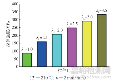 圖1 拉伸比對PEEK薄膜拉伸強度的影響
