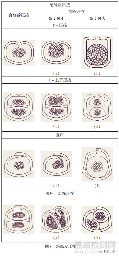 絕緣部分的壓接除了上面提到的較常見的外,還有一些其他的壓接,如圖9所示,其判斷標(biāo)準(zhǔn)和上面一樣。