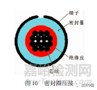 絕緣皮的壓接還包括絕緣皮、密封圈和端子的壓接。其具體要求是:提供密封圈牢固支持;在密封圈的頸部和肋部沒有劃傷和切口;塑線壓接翼不允許刺穿密封圈的頸部,如圖10所示。