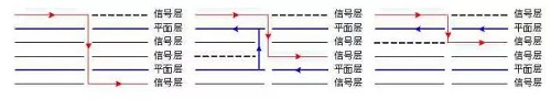 3、時(shí)鐘線和信號(hào)線盡量不要換層走線,如確因?qū)嶋H情況需換層時(shí),在走線過孔處,需打地過孔。