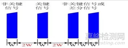 4、時(shí)鐘線、總線、射頻線等關(guān)鍵信號(hào)走線和其他同層平行走線應(yīng)滿足3W原則。
