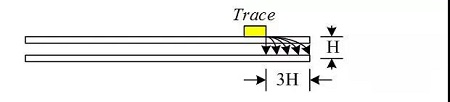11、關(guān)鍵信號(hào)線距參考地平面邊沿≥3H(H為線距離參考平面的高度),特別是電源走線