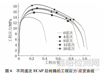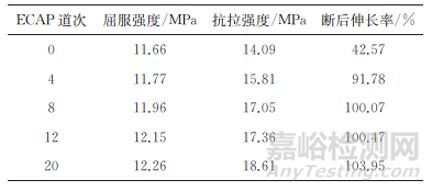 表1 不同道次ECAP后純錫的拉伸性能
