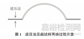 方案1,將一套試樣編號為 H1-1、H1-2、H1-3,采用從外圓弧壓至內(nèi)圓弧(逆壓法)的壓扁方式將試樣兩端壓扁(見圖1),壓扁長度約為50mm,然后進行室溫拉伸試驗。