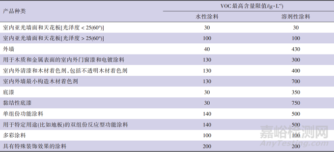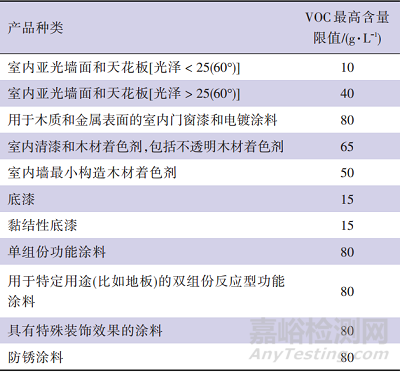 2.1 歐盟室內(nèi)用涂料的VOC限量比我國更加嚴(yán)格
