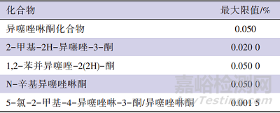 表6 2014/312/EU關(guān)于異噻唑啉酮類化合物的限量要求