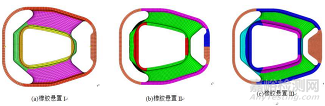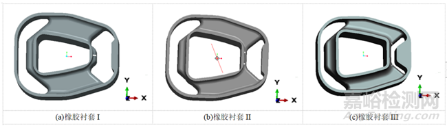 圖3 三種不同結(jié)構(gòu)的拉桿橡膠結(jié)構(gòu)示意圖
