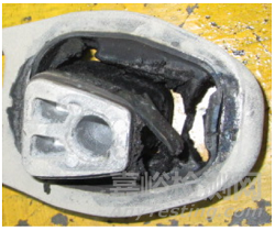 上圖三種懸置結(jié)構(gòu)中,橡膠懸置II在路試后出現(xiàn)疲勞破壞,損壞后的橡膠懸置II如圖4所示。由圖4可知,疲勞裂紋的位置處于懸置接近金屬內(nèi)管的部分。