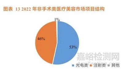 光電類項(xiàng)目風(fēng)險(xiǎn)相對于注射類項(xiàng)目更低,越來越受到消費(fèi)者青睞。相比注射類項(xiàng)目,光電類項(xiàng)目風(fēng)險(xiǎn)更低,安全性更高。其次,隨著技術(shù)的進(jìn)步和光電設(shè)備的更新?lián)Q代,光電項(xiàng)目有效性也在不斷提升,使消費(fèi)者更愿意選擇光電項(xiàng)目。根據(jù)《2022 年中國醫(yī)療美容行業(yè)研究報(bào)告》調(diào)研數(shù)據(jù)顯示,非手術(shù)類項(xiàng)目中,相較于注射類項(xiàng)目,光電類項(xiàng)目主要以祛斑、緊致抗衰為主,多為無創(chuàng)或微創(chuàng)項(xiàng)目,以更“輕”的手段達(dá)到祛斑、抗衰的目的吸引了更多消費(fèi)者,占比略大于注射類項(xiàng)目。