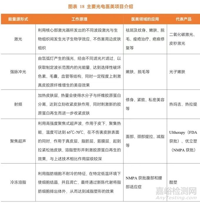 光電醫(yī)美又稱能量源醫(yī)療美容,通常指運(yùn)用激光/強(qiáng)脈沖光/射頻/聚焦超聲/冷凍溶脂等光電技術(shù)作用于皮膚。從工作原理來看,不同能量源技術(shù)可到達(dá)不同皮膚層,進(jìn)而實(shí)現(xiàn)不同醫(yī)美功效。從消費(fèi)端的需求來看,主要有美白、嫩膚、抗衰、塑形等四大類的需求,能量源醫(yī)美器械均可滿足。