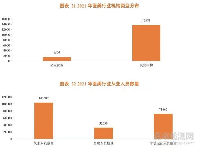 • 醫(yī)美機(jī)構(gòu):機(jī)構(gòu)內(nèi)美容師、執(zhí)業(yè)醫(yī)師等人員缺乏專業(yè)資質(zhì),操作不規(guī)范,超適應(yīng)癥使用產(chǎn)品,甚至發(fā)生人身安全事故等違規(guī)操作普遍存在。根據(jù)德勤數(shù)據(jù),2021 年醫(yī)美行業(yè)機(jī)構(gòu)類型分布,其中公立醫(yī)院有 1507 家,民營機(jī)構(gòu)有 13673 家。截至 2021 年,國內(nèi)沒有資格非法從事醫(yī)療美容服務(wù)的機(jī)構(gòu)是正規(guī)機(jī)構(gòu)的 6 倍以上,一些美容機(jī)構(gòu)混淆生活美容和醫(yī)療美容,超范圍開展美容項(xiàng)目,進(jìn)行無證經(jīng)營,15%合法醫(yī)療美容機(jī)構(gòu)存在超范圍經(jīng)營現(xiàn)象。從醫(yī)美行業(yè)從業(yè)人員數(shù)量看,2021 年行業(yè)從業(yè)人員數(shù)量超過 10 萬,其中非法無證人員數(shù)量達(dá) 71662 人,行業(yè)非法從業(yè)者數(shù)量占比較大。
