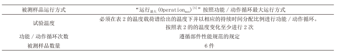 試驗詳情必須按照各部件功能/動作循環(huán)性能規(guī)范的規(guī)定,見表1。