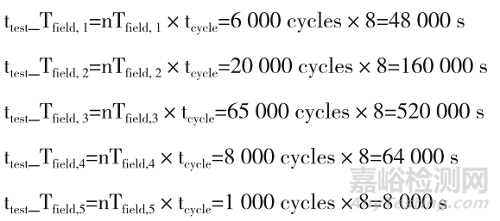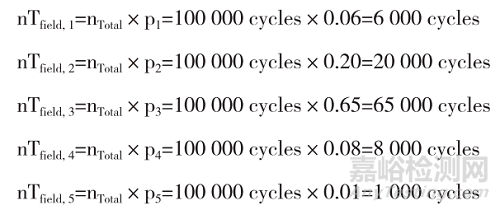 表2中將要試驗的機械/液壓功能/驅(qū)動周期從使用的溫度載荷譜分布到每個溫度Tfield,1... Tfield,n,使用以下方程: