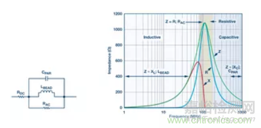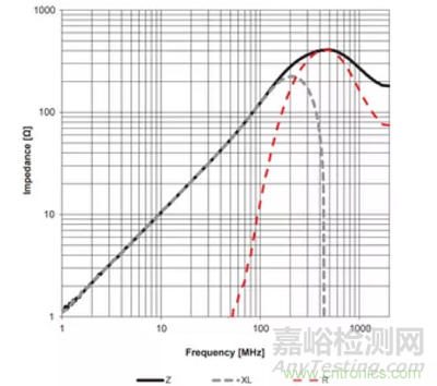 從直流電(DC,0Hz)直到諧振頻率fr,鐵氧體磁珠的阻抗行為都是感性的。