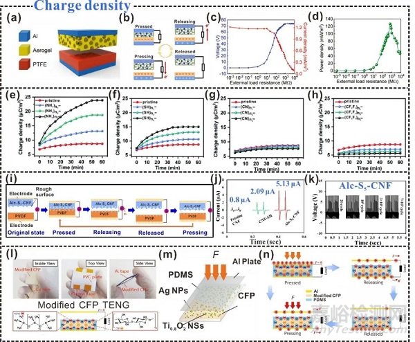 纖維素摩擦電材料的性能調(diào)制對摩擦電輸出的穩(wěn)定性和性能增強具有重要影響。纖維素材料容易在與其他聚合物材料接觸的過程中失去電子,從而呈現(xiàn)弱摩擦電正極性。討論纖維素摩擦電材料的摩擦正極性、摩擦負極性和電荷密度等性能調(diào)制思路,可以進一步幫助制備具有高摩擦電性能和強穩(wěn)定性的材料。