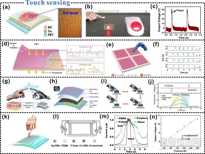 圖5 用于觸覺傳感的自供電可穿戴電子設備