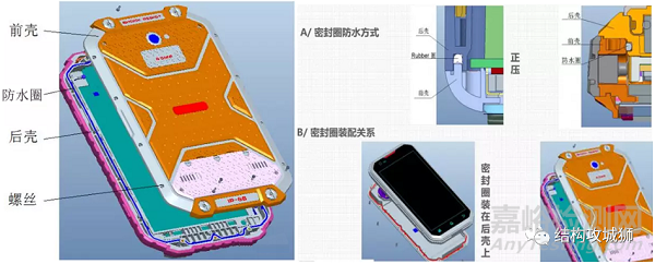 傳統(tǒng)的三防機前后殼多數采用密封圈+螺絲固定,密封結構占用較大空間。