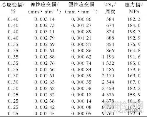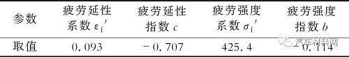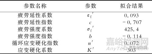 將應(yīng)變- 壽命曲線擬合相關(guān)的應(yīng)力應(yīng)變參數(shù)列入表3中。