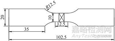 將焊后試樣線切割加工成厚3 mm的疲勞試樣,加工時確保焊縫處于疲勞試樣的中心,如圖1所示。根據(jù)GB/T 15248—2008[8],采用軸向應(yīng)變控制,保持頻率1 Hz及應(yīng)變比 R=-1恒定,三角波加載,在MTS- 6730型電液伺服疲勞試驗機(jī)上對試樣進(jìn)行應(yīng)變幅為0.25%~0.40%的低周疲勞試驗。